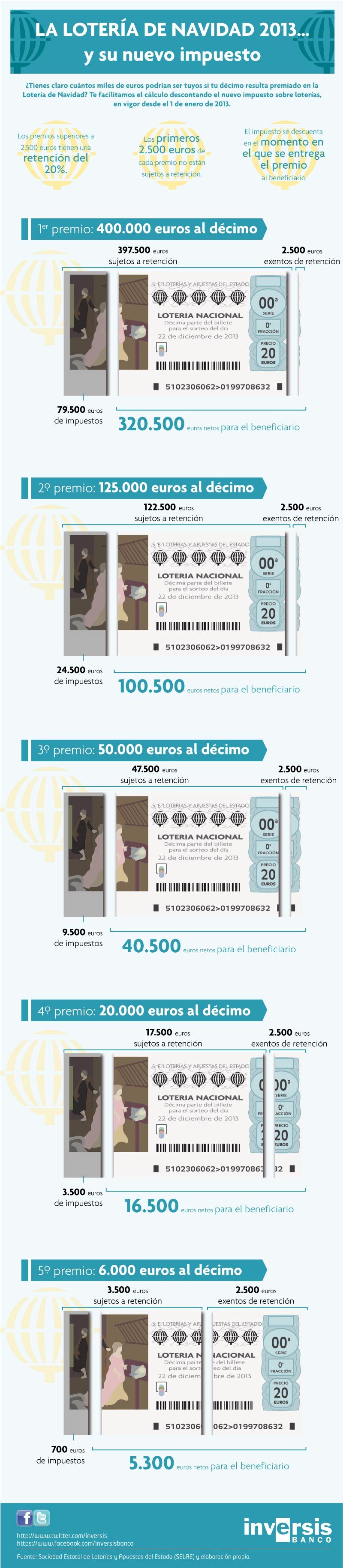 El Sorteo de Navidad de 2013 fue el primero en el que el premio 'Gordo' pagó impuestos. Desde ese 22 de diciembre, los premios que superen los 2.500 euros tienen una retención del 20 por ciento que practicará la propia organización del sorteo, según explicó el secretario general de Gestha, José María Mollinedo.
